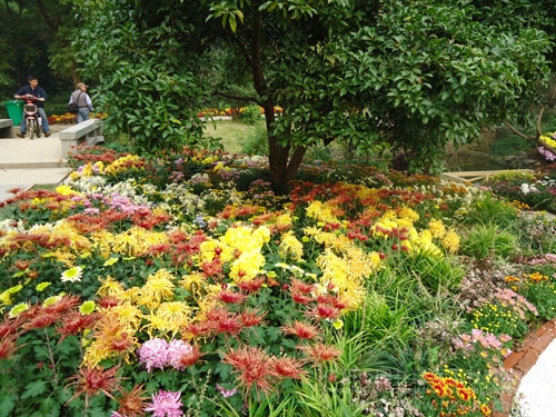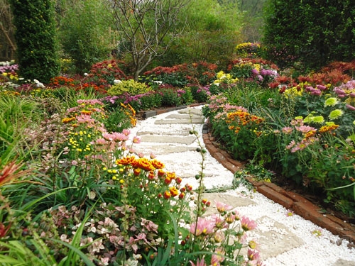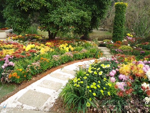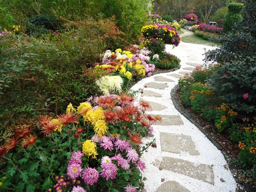 园路两边,菊花正艳