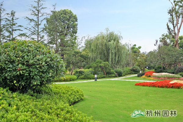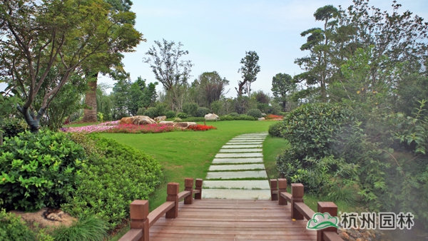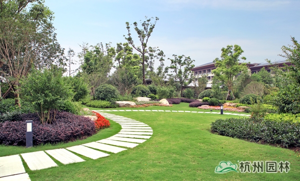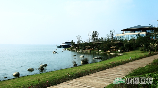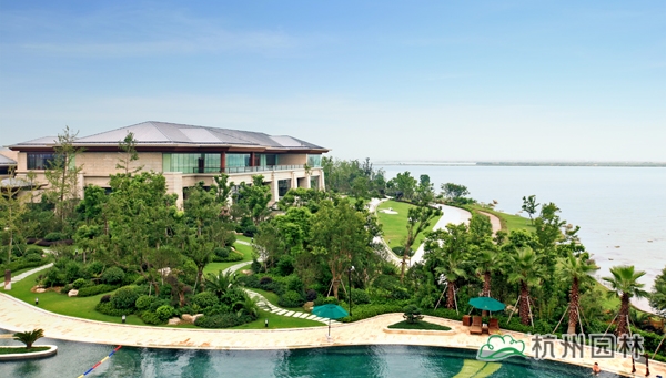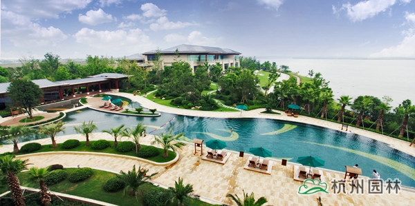 该工程位于江苏吴江松陵镇滨湖路三船河大桥附近,内容包括绿化种植、硬质铺装、园路施工、景观小品工程、桩基工程、景观照明系统等。在植物配置上,将中国园林的自然式手法与英国园林的自然式风格相结合,营造出亦古亦今、中西混搭,整体恢宏大气、局部婉约精致的高端酒店景观。该工程荣获“2014年度中国优秀园林绿化工程大金奖”。