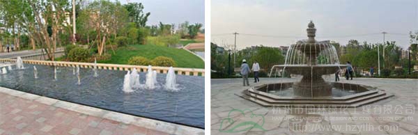 受中国传统文化的影响,中国人喜欢静观或观静,现代小区水景设计一方面可以满足人们对居住环境安静舒适的需求,另一方面通过适宜小区环境尺度的喷泉、涌泉、叠泉等动水,增加小区环境的生气及灵动性,给人们以感观的刺激,用水的动态之美与水声之美让身处闹市之郊的居民体会“山水有清音”的意境与自然美景。