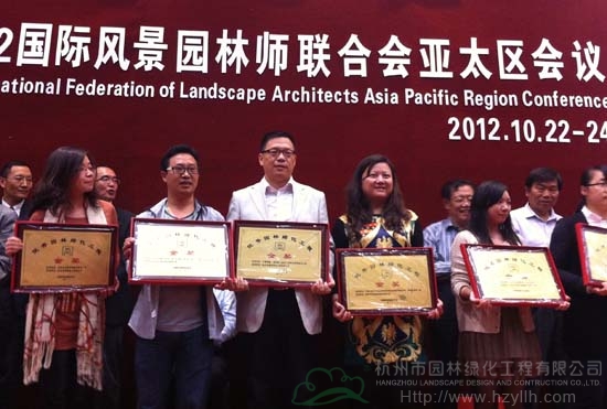 2012年度中国风景园林学会“优秀园林工程奖”共颁出获奖项目195项,其中,“优秀园林绿化工程奖”185项,“优秀园林古建工程奖”10项。杭州市园林绿化工程有限公司承建的中国铁建•国际城(杭州)示范区园林绿化工程和深圳市国道205深圳段改建工程景观绿化工程G5402标段双双荣获金奖。