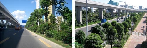 如今,开车行进在这条道路上,干净整洁的路面、开阔通透的视野、清新自然的景观,给人带来闲适、惬意的感觉。“以人为本,尊重自然”的绿化理念,体现在景观中的每个细节;自然环境与城市环境的密切结合,使高架桥的道路通行功能与桥下中央绿化带的生态功能有机融合。整条道路,不仅体显出深圳这个滨海大都市独有的景观特色,更彰显出这个城市的生机活力与热情奔放。