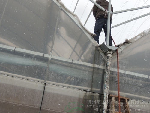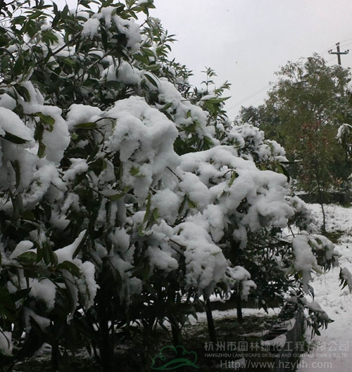 2月19日,一场暴雪突然而至,纷纷飘落的雪花,给了人们一个措手不及。厚厚的积雪给杭州市园林绿化工程有限公司各苗木基地的设施及露地花木造成了极大威胁。为了减少损失,基地人员在部门领导的带领下开展了积极的抗雪工作。