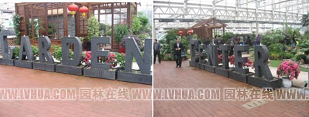 一进入室内,首先映入眼帘的就是“GARDEN CENTER”(花园中心)几个大字,仔细一看,上面还有流水青烟,十分吸引人的眼球。花园中心内不仅展示了各式各样的室内植物、庭院植物,更有各种肥料、工具等园林资材展示。