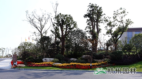 吴江东太湖温泉度假酒店项目景观工程(一标段),位于吴江市松陵镇滨湖路三船河大桥附近。工程通过“中西混搭”的植物造景手法,营造出视野开阔、景观宜人、独具江南水乡特色的生态美景,从远处眺望,整个酒店像是一座承载“绿色城市”梦想的乐活城邦!工程突出的亮点之一是施工中充分利用了地形起伏,改善种植条件,增加绿地面积,解决排水问题。走在工程现场,感受到的不仅仅是清新空气和绿色美景带来的心旷神怡,还有这些植物所呈现出的勃勃生机。而这所有的一切,都来源于绿化人那份心系绿色的心,来源于他们那份浓厚的绿色情怀!