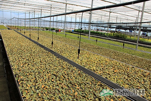 杭州画境种业有限公司径山基地基础建设已于2014年基本完工,包括荫棚地块建设、基质搅拌、办公室、仓库等,其中,新建的温室大棚已全面投入使用,由公司自行组培的16万棵火焰南天竹也进入了炼苗阶段,画境种业的员工和工人们一起,通力合作,争取以最高的效率完成炼苗工作,总经理黄民强也亲临现场,给大家指导与支持。在领导的关心下,大家信心倍增,计划在一周内完成全部炼苗工作。火焰南天竹,是公司组培研发生产的新品种,它植株低矮,枝叶密集;幼叶及冬季叶亮红色至紫红色,初秋叶变红色,比南天竹红色叶深,变色期早;喜温暖湿润、通风良好的半阴环境,较耐寒,生长较快,在园林景观中的应用比较广泛。