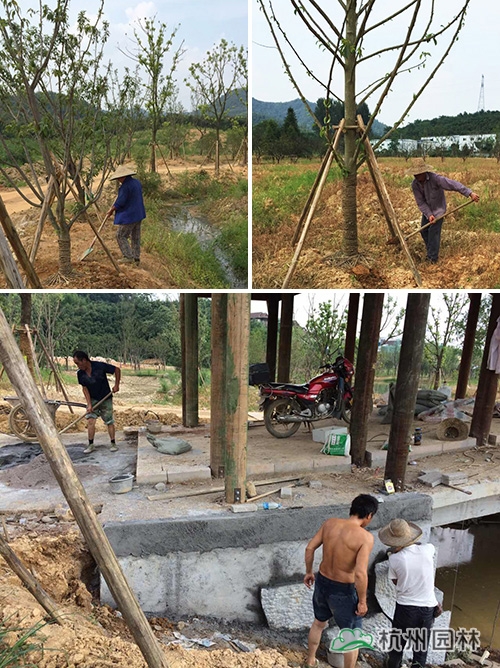 工地上,几个民工正在给移植好的树木填土围圈和浇水,尽管低着头,但我仍能清晰地看到他们脸上的汗水如瀑布般飞流直下落在泥土上,不到一秒钟就全部被蒸发掉。不远处,几个民工在给桥侧面做硬质铺装,一位赤裸上身的男子的汗水如一颗颗珍珠纷纷落下,黝黑的皮肤在烈日的炙烤下变得更加黝黑。一名民工在桥上搅拌泥土,铁锹在沙子与地板擦出的声音和着他低沉的喘息,我仿佛听见的是这个夏天全宇宙最悲嚎的奏曲。几名水电工正在接水管,身上的汗水像从壶里刚烧开的沸水冒着泡。他们不失幽默的笑着对我说:带茶叶和水杯了吗,用我们身上这滚烫的水泡一壶吧,保证比西湖龙井里的泉水泡出来的更有味道,更能解渴。