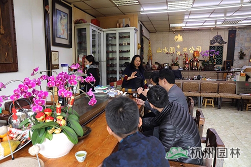 山水园林景观公司的杨枚良女士有多年的樱花引种、繁育、栽培、应用经验,在台湾业内素有“樱花女王”之称。考察期间,考察人员特地前往山水园景观公司拜访杨枚良女士,交流樱花引种、生产、栽培经验,并前往山水园林景观公司的樱花苗圃基地参观,实地考察台湾地区主要栽培樱花品种的生产、栽培情况。
