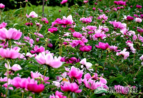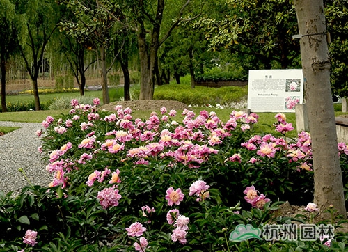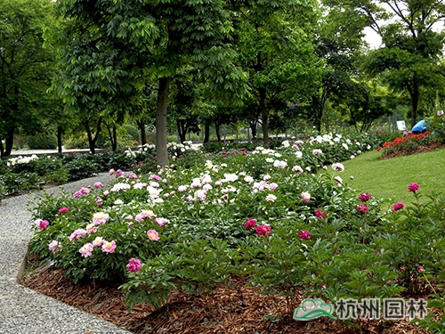 不同品种、不同色泽的芍药沿园路形成路缘花境,又自成芍药专类园。