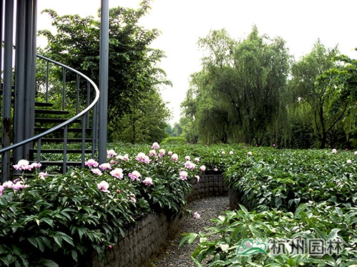 芍药迷宫,下部采用疏松透气的介质作为种植筐,为芍药提供良好的生长环境。