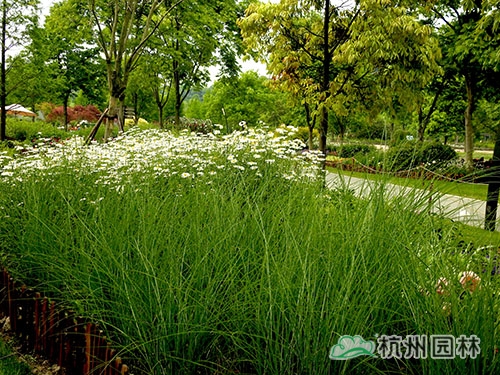 大滨菊高度可达60-80cm,在多块花境组合中,采用大滨菊做隔断,空间分割自然,又可遮挡部分其他景观,增加景观的游赏性和趣味性。