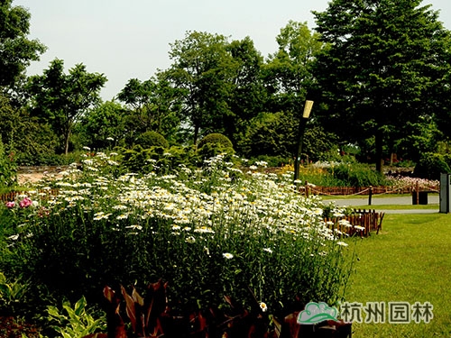 大滨菊在宿根植物专类区中,可通过与金鸡菊、萱草、天人菊、松果菊等色彩、高度的变化,形成具有一定观赏性、花期较长的宿根花境。