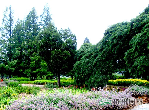 通过园路弧线的设置,大片荆芥、萱草等宿根植物的种植,与远处的水杉林形成均衡感。
