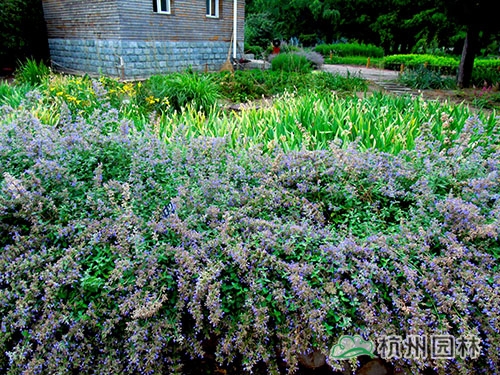 荆芥丛生状明显,茎叶常呈匍匐状,花量大,色泽较淡,常出现在较古朴的花境景观中,可用于软化建筑、岩石、松柏等生硬的线条。