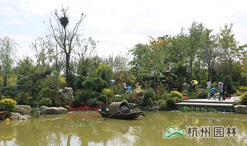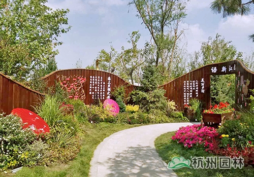 “浙江园”以“浙•乡•绸”为设计主题,采用传统浙江园林的造景手法,以写意的自然山水展现浙江独特的水网密布的地理地貌、小桥流水的江南韵味以及水乡的蚕、茶文化,诠释“梦回江南、丝路通商”的概念,力求打造“良渚源、蚕茶乡、古韵风、新思路”的历史情境,巧妙植入园林新科技、新工艺、新品种,展示“越溪浣纱、陌上锦霞、古道寻遗、烟气汀州、丝路新语”等现代浙江园林的景观新风貌。