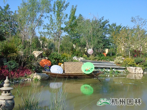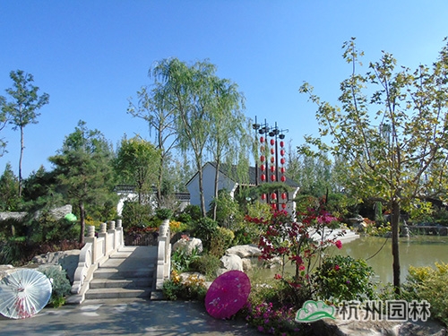 在“浙江园”,施工现场负责人方礼银带领大家f进行参观并现场讲解。“越溪浣纱”、“陌上锦霞”、“古道寻遗”、“烟气汀州”、“丝路新语”等一个个经典小品,不时给大家带来惊喜,赢得了代表团成员的高度肯定。大家一致认为,能在位于中国西北部的银川这片土地上看到颇具江南特色的园林小景、标志性建筑和本土花卉、植物等,既能适应这里的气候环境,又能充分展示浙江园林的景观新风貌,给人带来“梦回江南”的亲切感觉和“丝路通商”的遥远回忆,真的很不简单。