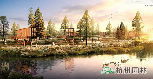 养生休闲主题区:对原有的生产景观保留改造,水稻田、葡萄园、油菜园、果园、苗圃以及可食用水生植物被布置其中,兼具经济与观赏价值,结合水庄、竹庭、有机菜园,酒庄等休闲景点,推广宣传现代都市农业。