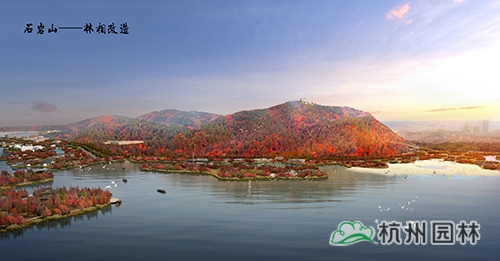 越王城山、老虎洞山、石岩山和柴岭山为湘湖两岸群山的四大主峰,依托层峦叠嶂之山势,进行山林林相改造,营造锦绣湘湖之湖山景观。