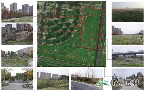 场地现场原为荒地,周边居民在此种植蔬菜等,比较杂乱。场地周边有排水渠道, 已建成公园内的水系也为死水。其次,项目场地共有6组不同高度土堆,在设计过程中,将场地因素整合考虑,合理利用,遵循节约型园林的营建原则,追求绿色基地下的资源收集与利用,在此基础的考虑下决定做一处海绵公园。