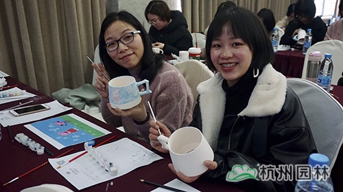 说起陶艺,大家想到的肯定是双手扶着转盘上的陶泥,捏出形态各异作品的场景,但今天我们玩点不一样的。素胚固然清爽,但少了色彩的点缀,总会觉得好像黑白电影略显枯燥。是的,这次我们将画纸搬到了这些瓶瓶罐罐之上。认真的女人真的很美,一幅幅生动的画作在短短的一个多小时的时间里展现在了大家的眼前。有山水,有动物,有卡通画,有说要送给家中宝宝的,也有说这代表了我们一家三口的。拿起画笔的小仙女们,不再是那些个日常办公室里的形象了,她们在今天,把自己的可爱、风趣、温婉、随性等等面貌展现得淋漓尽致。