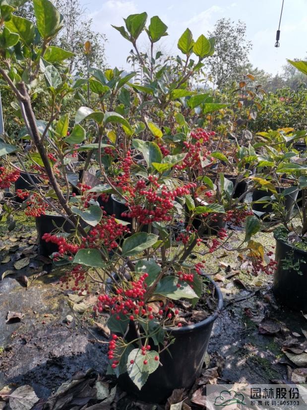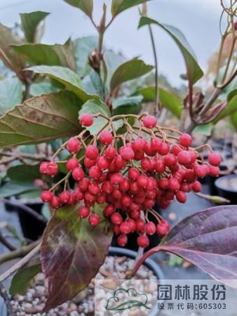 荚蒾属植物既可观花又可观果,且绝大部分种类都是可以观果的,只是被开发应用的寥寥无几,故仍有许多优良的观果种类有待开发,如皱叶荚蒾的一些杂交品种及很多本土原种,像宜昌荚蒾、荚蒾、伞房荚蒾等等,均具有良好的开发潜力。后期,园林股份将继续加大荚蒾属植物的开发力度,力争更多的荚蒾产品在美丽中国建设中大放异彩。