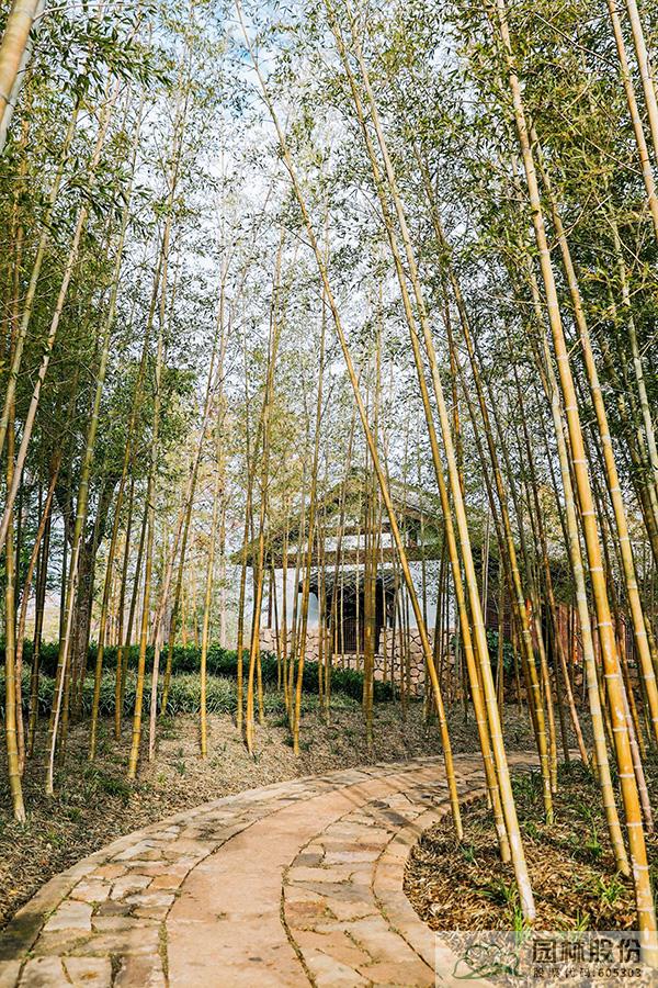 竹是新时代杭州重要的文化载体之一。因此入口左侧选择西湖环境中“茂林修竹”之元素,以毛竹种植为主,形成夹景,曲径通幽。