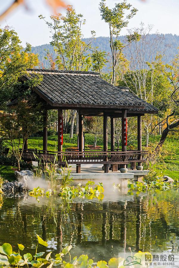植物景观:为紧扣设计主题,选用了适宜当地生长、形态优美且体现杭州特色的植物,包括银杏、金钱松、三角枫、沙朴、乌桕、水杉、桂花、鸡爪槭、山茶等共计150余种(含品种),69个科106个属。通过近自然、群落化的植物配置手法,展示出了杭州师法自然、雅致清丽的植物景观艺术美。虽因疫情影响,本届园博会几经推迟,但时间也验证了园内植物群落的稳定以及可持续发展的理念。