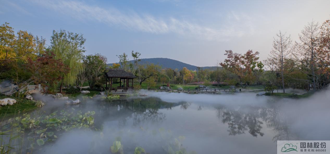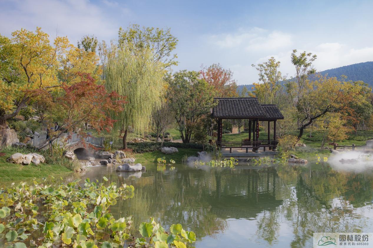 杭州园总体以西湖“景中村”为设计蓝本,以“家在钱塘”为主题,通过浙派园林的造园手法,营造“竹隐”“云舍”“湖居”“问茶”“寻香”五大展区,描绘出一幅“小桥流水人家”与茶园竹林、南宋风情相交融的美丽画卷,塑造“人与天调,然后天地之美生”的生态园林,展现宜居宜业宜游的诗画西湖和杭州韵味。项目施工内容主要包括铺装工程、绿化工程、园林水系、仿古建筑等。
