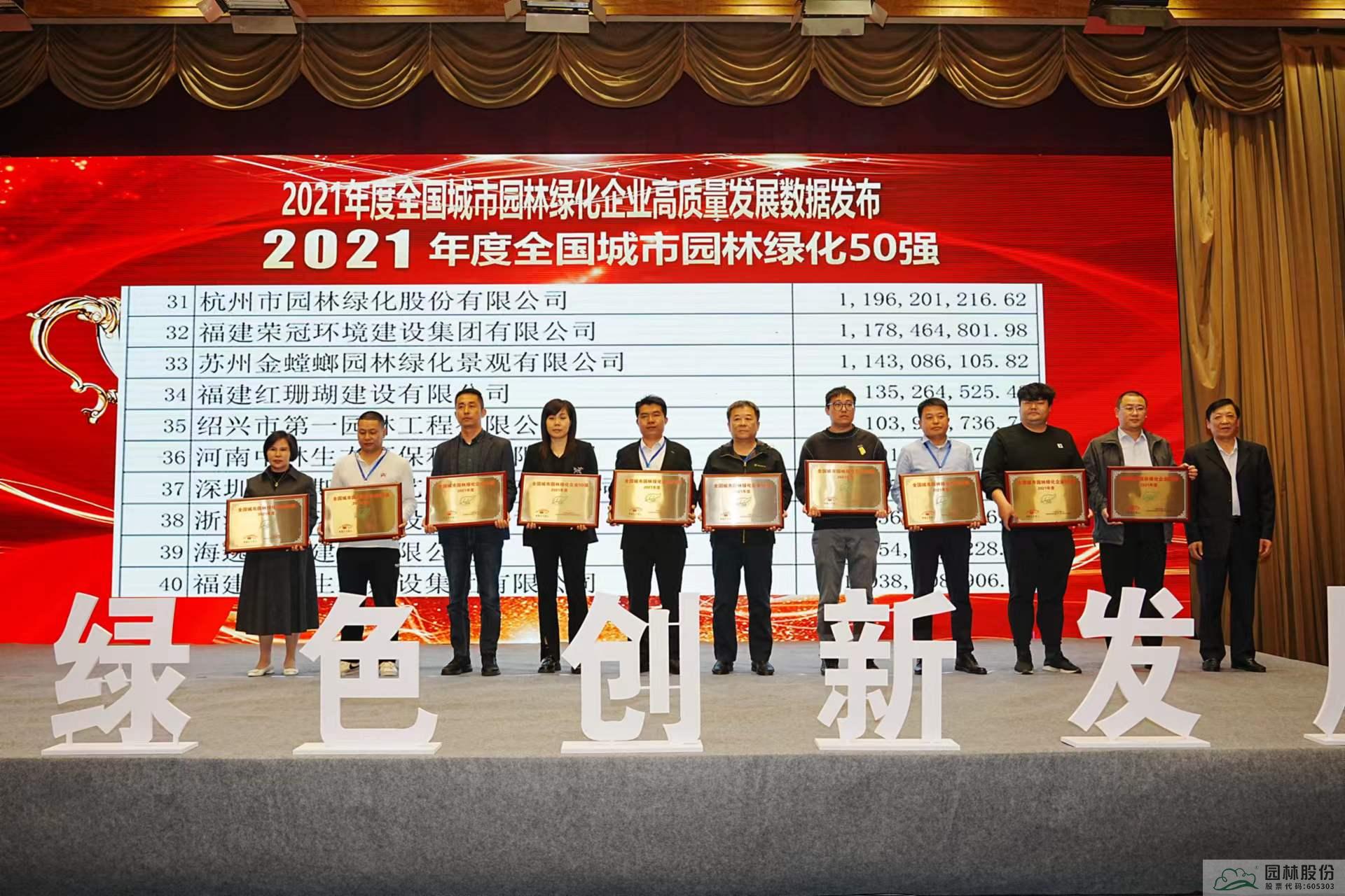 园林股份上榜2021年度全国城市园林绿化50强