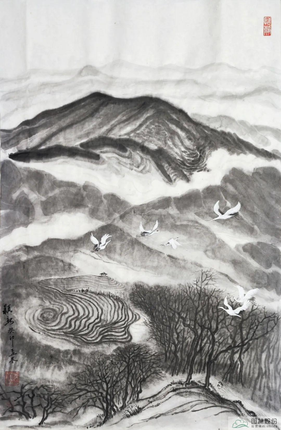 其中,williamhill官网办公室主任李颖新以径山美景为创作内容的书画作品成功入选前20名。作品以杭州径山及国家级美丽休闲乡村-小古城村的自然景观、乡村风情、茶园风貌、翩翩白鹭等作为创作素材,主要表达在新时代背景下,随着乡村振兴战略的全面推进,一幅幅人与自然和谐共生的美丽画卷正在神州大地徐徐展现。图中山峦起伏、云雾氤氲、茶园连绵、溪水潺潺、白鹭纷飞……共同绘就一幅意境唯美的乡村风情画卷,留下一段令人念念不忘的乡愁记忆。