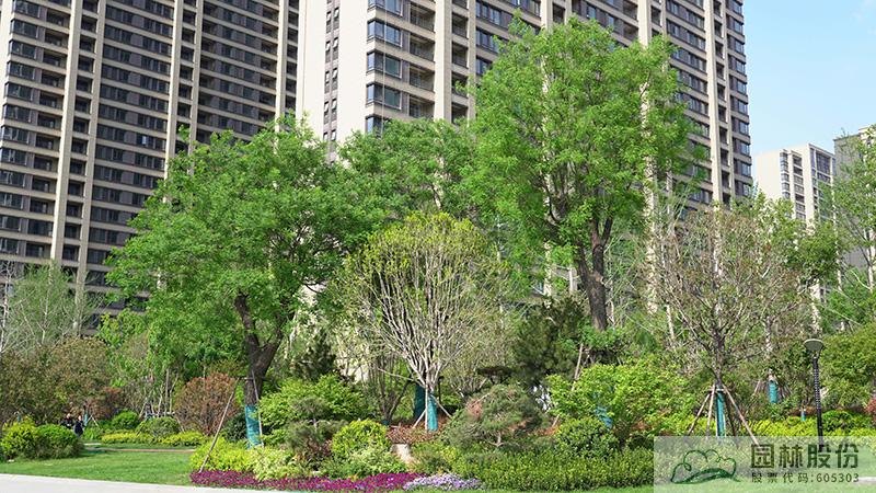 根据设计要求,选择适宜的树形、规格,确保苗木无病虫害、无偏冠、无枯枝等现象。栽植前,对场地进行平整,使土地充分沉实,避免土地沉降现象;放线开挖种植穴,根据苗木的品种、大小确定树穴开挖规格;挖穴后,在树穴底部回填种植土及肥料。栽植时,选好主要观赏面的方向,照顾朝阳面,树弯尽量在迎风处,扶正栽植,树冠主尖与根在同一垂直线上,剪除不易腐烂的包装物,对重要的树种施生根剂等催生农药。栽植后,对苗木进行扶架固定,防止倒伏。