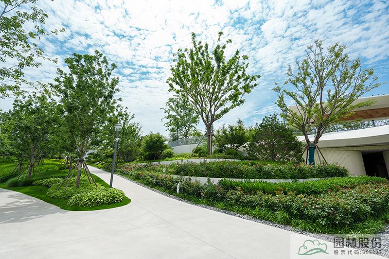为突出地域特色,充分运用雪松、五角枫、国槐、银杏、白蜡等乡土植物,通过多种方式的造景手法,构建出一个复合、立体、多层次的园区主体植物群落。合理控制乔、灌、地被的比例为3:1:6,其中常绿植物与落叶植物比例为4:6。将乔灌木、常规地被、宿根植物、观赏草等植物材料有机结合,形成物种、形态丰富,层次多样的植物景观。