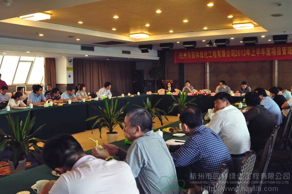 5月26日,杭州市园林绿化工程有限公司在田园宾馆八楼会议厅召开了“2012年上半年度项目管理交流会”,市场部经理傅磊主持会议。各分公司、项目部及相关部门共六十多人参加了会议,董事长吴光洪、副总经理陈伯翔、总经理助理吴忆明等领导出席。