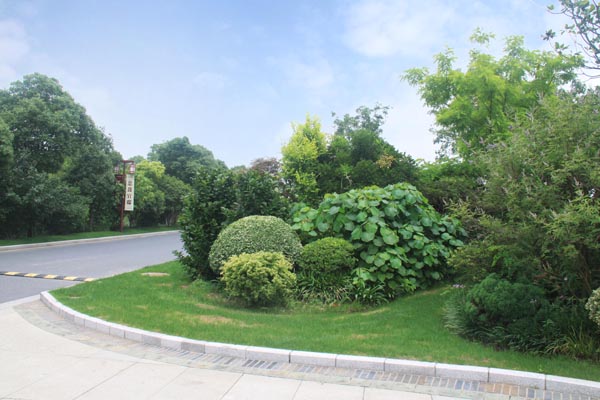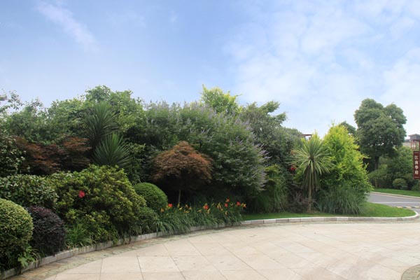 别墅小区公共景观的植物配置不但要与建筑、环境相协调,还要做到多层次、多样化、多季相,并创造出植被生态景观及其围合空间的丰富多彩,达到人与环境的和谐统一,因此,植物的选择与配置显得尤为重要。据徐建良介绍,工程中的植物选择与配置遵循三个原则:第一,根据地域特征,考虑季相变化;第二,根据建筑空间的大小、远近,近景或端景配置观赏性强的品种,远景的植物配置则充分考虑空间天际线及建筑物之间的关系;第三,充分考虑林下植物和孤赏植物布置的各个方面,突出自然生长特征和人工修整造型植物之间的反差对比。以此为指导,上层空间选择了香樟、合欢、玉兰、朴树、银杏等大规格乔木,中下层空间种植红叶石楠、枸骨、杜鹃、铺地柏、火棘等花灌木和地被,再配以微地形的处理,整个植物造景的林冠线、林缘线及空间层次别具特色,从而使得别墅区的整体景观层次分明、色彩丰富,既在统一中富于变化,每个区域又自成风格。特别是每个路口的花境营造,更为小区增添一抹亮色。